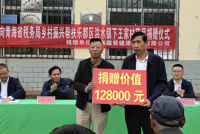 9月15日,秋雨間歇,由青海藏愛(ài)健康產(chǎn)業(yè)有限公司愛(ài)心捐贈(zèng)的價(jià)值12.8萬(wàn)元的藥品捐贈(zèng)儀式在青海省稅務(wù)局助力鄉(xiāng)村振興村(海東市樂(lè)都···